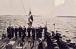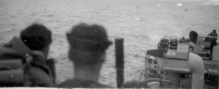 "Yours truly on the upper deck watching the goings on as the subs made official surrender to Naval officer
