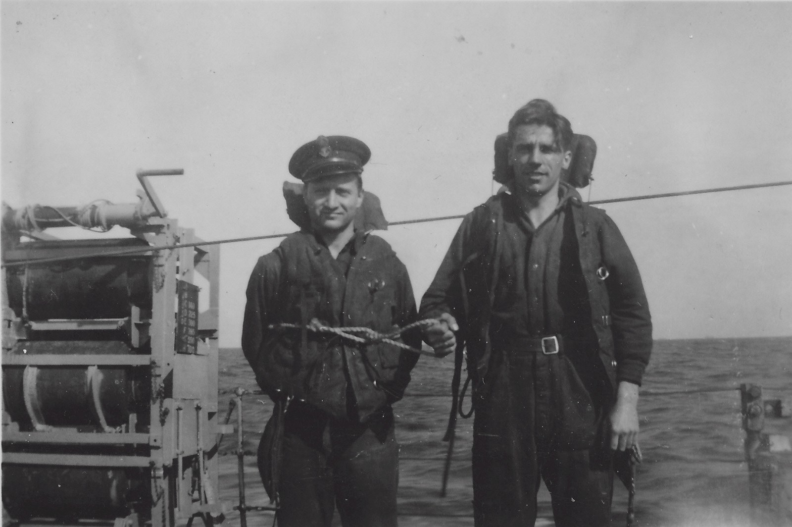 Ervin Hall (left) and unknown sailor on HMCS MONNOW