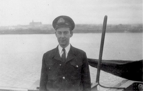 Ervin Hall on HMCS MONNOW, Loch Eriboll, Scotland, May 1945