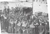 HMCS MONNOW K441 crew members on the jetty. HMCS MONNOW in the background. Date and place unknown