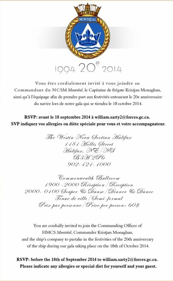 HMCS MONTRÉAL'S 20th Anniversary Gala Event (MTL004) Invitation to the 20th Anniversary (MTL005) Power Point Presentation for the 20th Anniversary (MTL006) Speaker Notes (PDF file) Courtesy of Brad Browne
