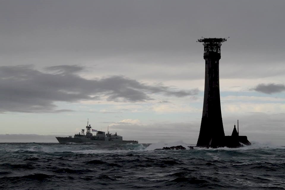 (MTL007) HMCS MONTRÉAL 336 - 2015 // Photographer: Jacek Szymanski, RCN Broadcast Unit // DND-RCN Photo 2015 (MTL008) HMCS MONTRÉAL 336, enroute to Plymouth, England, passes Wolf Rock with battle ensign flying - Oct 2015 // Historical note: On 17 Dec 1944, her predecessor, the River Class frigate, HMCS MONTRÉAL K319 rescued the survivors of U-1209, wrecked on Wolf Rock, southwest of Land's End // DND-RCN photo 2015 (MTL009) HMCS MONTRÉAL 336 conducting a RAS approach during Work-Ups - Mar 2015 (MTL010) Committal of Ashes of 22 veterans takes place on HMCS MONTRÉAL off Point Pleasant Park, Halifax, NS on Battle of the Atlantic Sunday, 01 May 2016 // Courtesy of Bill Gard