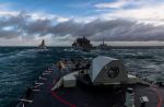 (MTL011 - MTL012) On September 19, 2017, HMCS MONTRÉAL took time from their operation to honour and remember the officers and sailors of HMCS ATHABASKAN who were lost at sea when the ship was torpedoed and sank off the coast of France on April 29, 1944 during the Second World War. As HMCS Montréal transited north as part of NEPTUNE TRIDENT 17-02, the ship’s company laid a wreath at sea over the area where HMCS ATHABASKAN sank. The wreath was laid by those who served on HMCS ATHABASKAN (3rd of name), named after the original ATHABASKAN, whose members felt a close connection to the ship and its history. // DND-RCN Photos 2017 (MTL013) HMCS MONTRÉAL (foreground) during Operation Joint Warrior 172 in the Irish Sea - Oct 2017 // DND-RCN 2017 (MTL014) HMCS MONTRÉAL transiting the Norwegian Sea - Oct 2017 // Photographer unknown