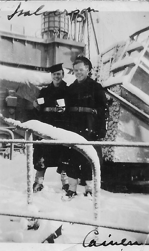 Halversen and Lawrence (Larry) Cainen (right) on HMCS