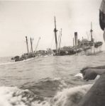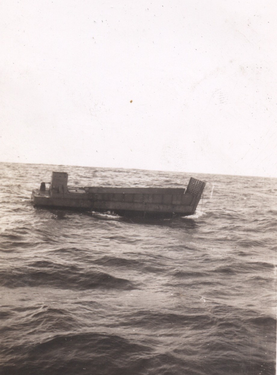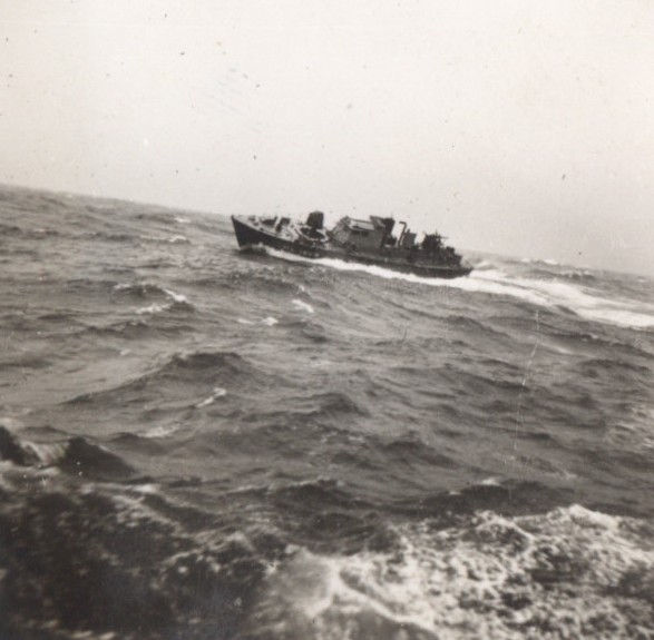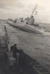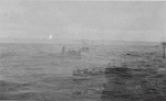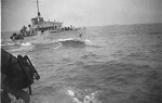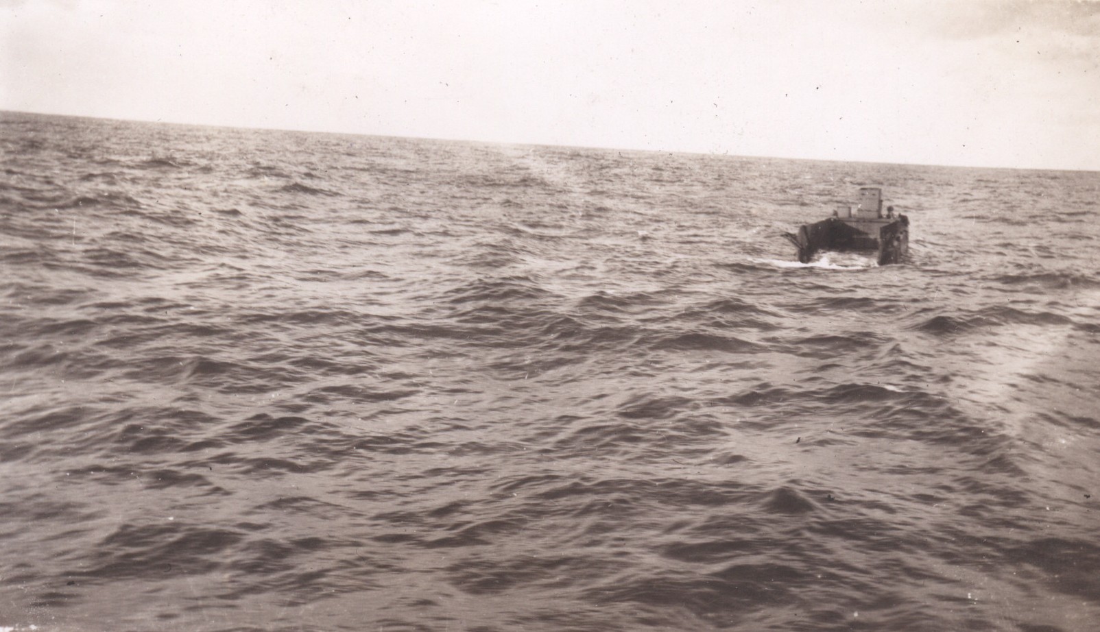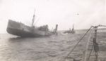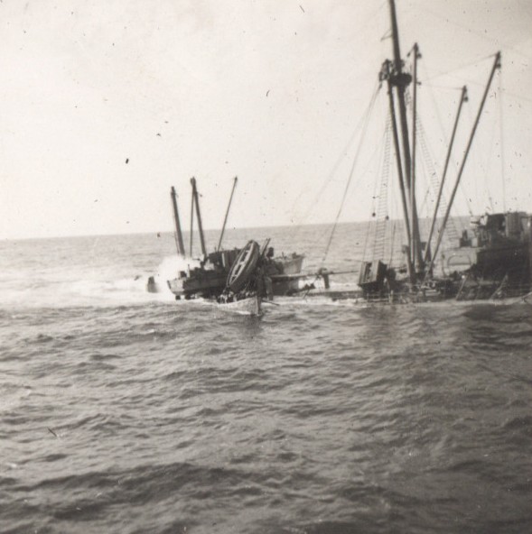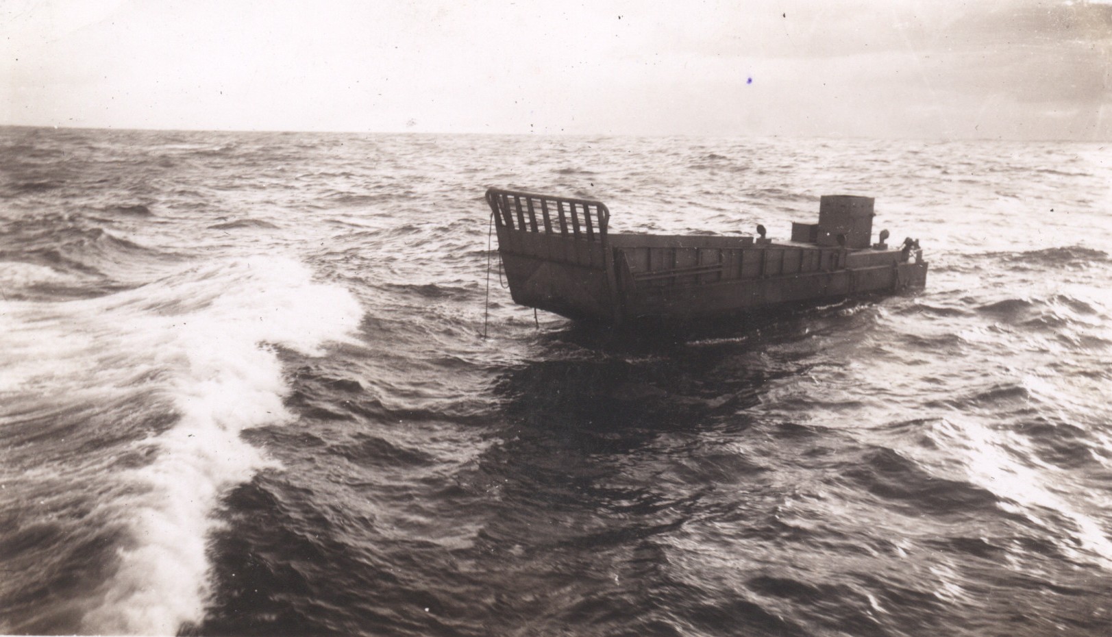 (RAS256-RAS265..) HMCS MORDEN K170 rescuing survivors of the Norwegian ship M/S BRAND (RAS266-RAS268) Landing craft, presumably from the M/S BRAND. On photo shows the landing gate down. It is not known of this is a different landing craft or if its the same one and its being scuttled. Note: On 12 May 1943 the Brand (Master Reidar Helgesen) was separated from convoy HX-237 in thick fog and was torpedoed on the port side aft by U-603 and sank after 7 minutes. Two crew members and one gunner were lost. The master, 34 crew members and six gunners abandoned ship in three lifeboats and set sails for Ireland, but were picked up the same day by HMCS MORDEN (K 170) (T/Lt J.J. Hodgkinson, RCNR). A Swordfish aircraft had been sighted in the afternoon and it had probably guided the corvette to the boats. (Source: The U-boat.net)