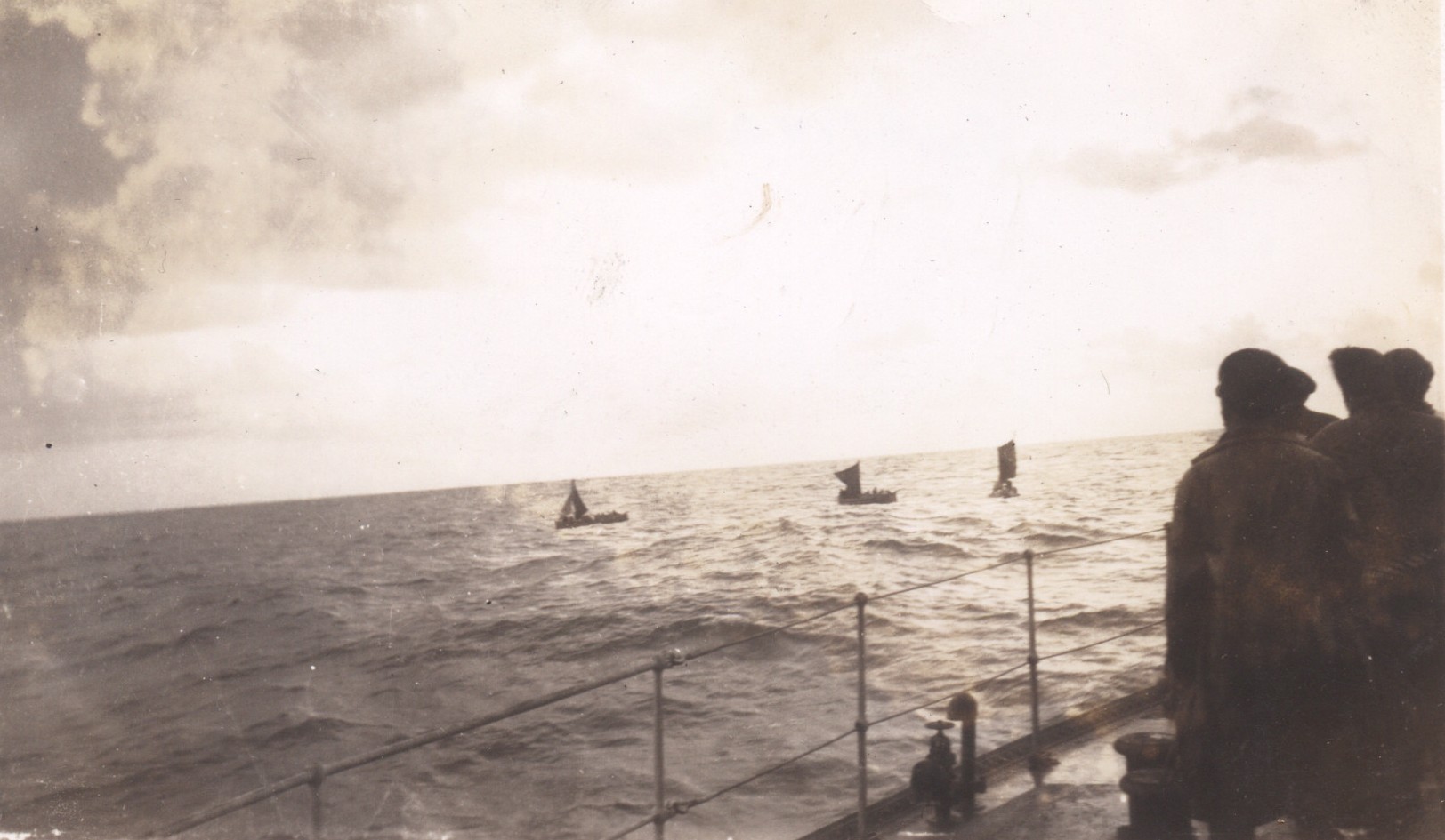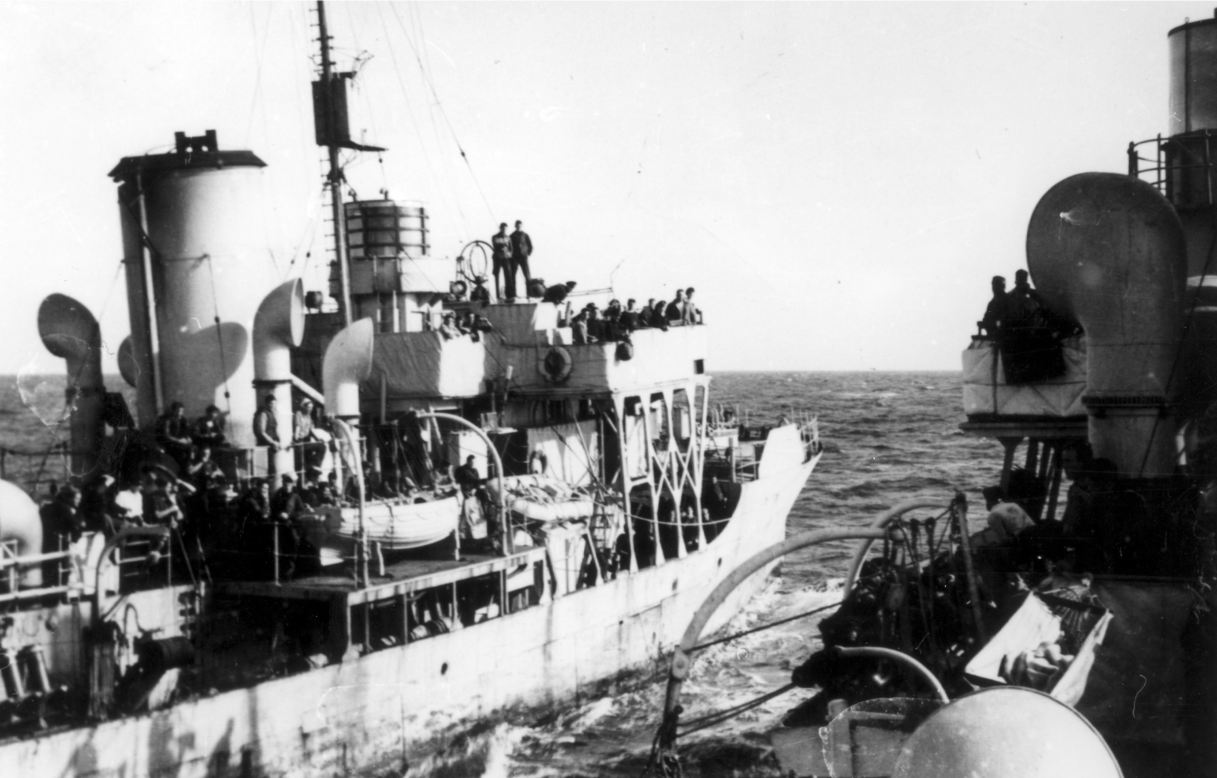 From the memoirs of Larry Restall - "Picked up 194 survivors from torpedoed liner SS Winnipeg in 13 lifeboats Picked up two gunners from torpedoed ship. Picked up one man completely soaked in black oil with only his eyes visible
