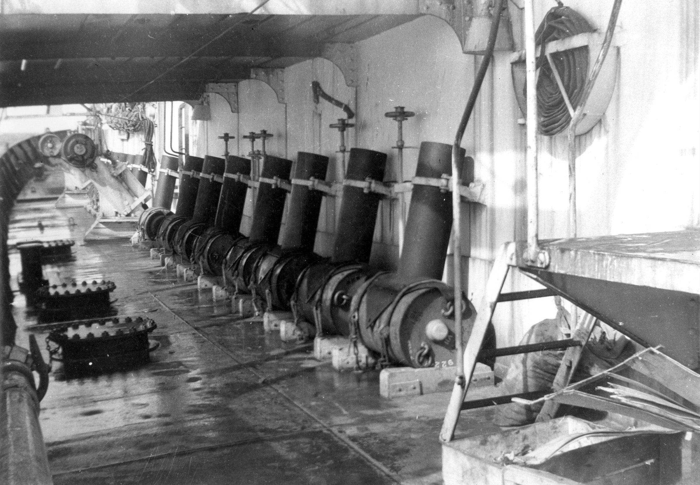(MDN001) The 4-inch gun of HMCS MORDEN // Credit: Ken Macpherson / Naval Museum of Alberta (MDN002) HMCS MORDEN as seen from HMCS Kamloops circa 1942-1943 // Source: Flickr photo collection of Ron Bell (MDN003) HMCS MORDEN K170 during acceptance trials August 1941 // Source: Flickr photo collection of Ron Bell (MDN004) HMCS MORDEN'S depth charge storage area // Source: Flickr photo collection of Ron Bell (MDN005) HMCS MORDEN in the North Atlantic // Source: Flickr photo collection of Ron Bell
