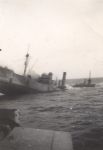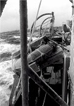 (RAS271) Sailors on HMCS MORDEN K170 moving what looks like a spare depth charge rack/rails (RAS272) "Fergie" by the signal lamp on the bridge wing of HMCS MORDEN K170 (RAS273) Two unknown sailors on HMCS MORDEN K170. What they are each holding is unknown (RAS274) Unknown sailor on HMCS MORDEN K170 reading a book (RAS275) The shoreline of the River Foyle seen from HMCS MORDEN K170