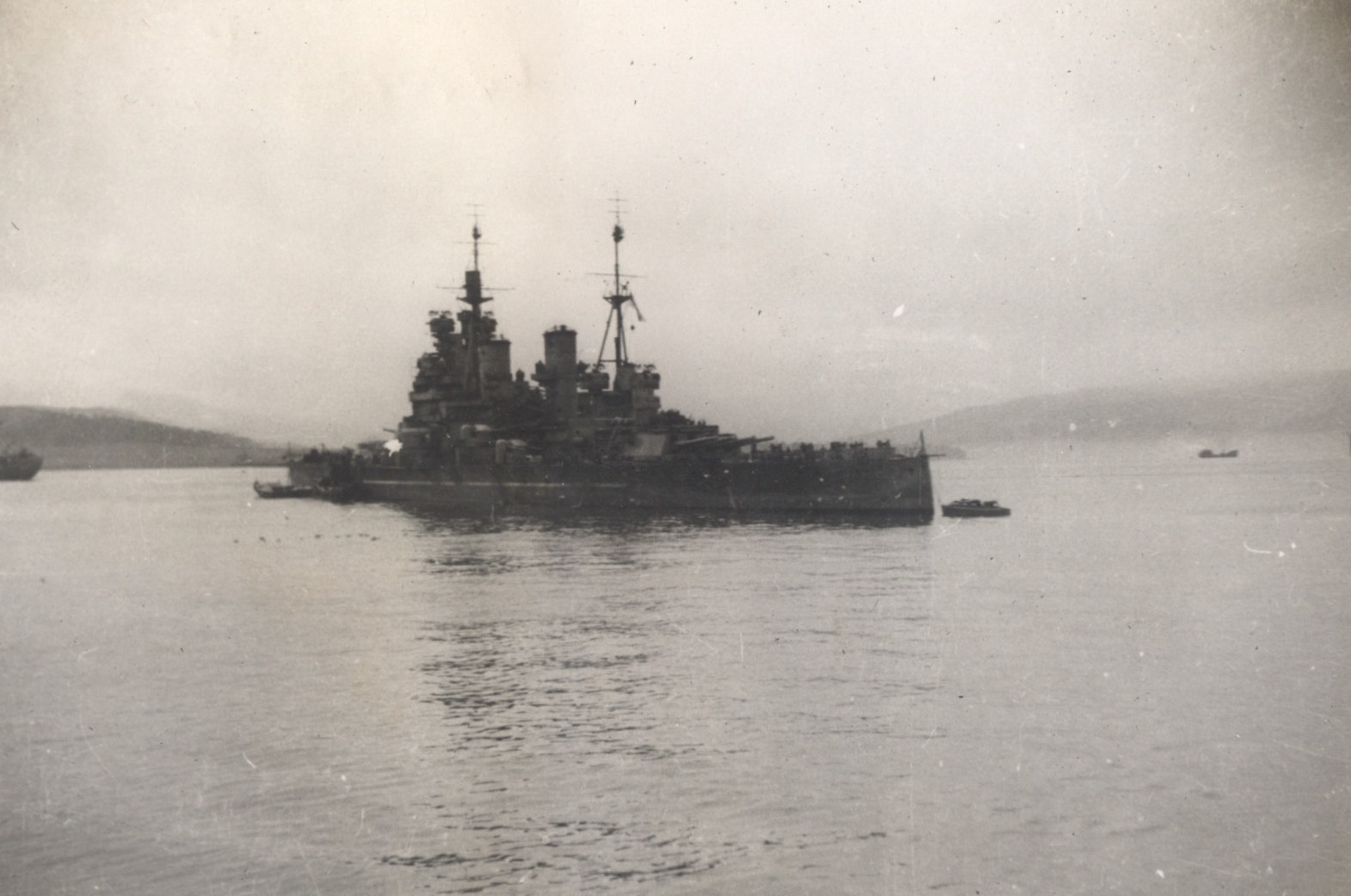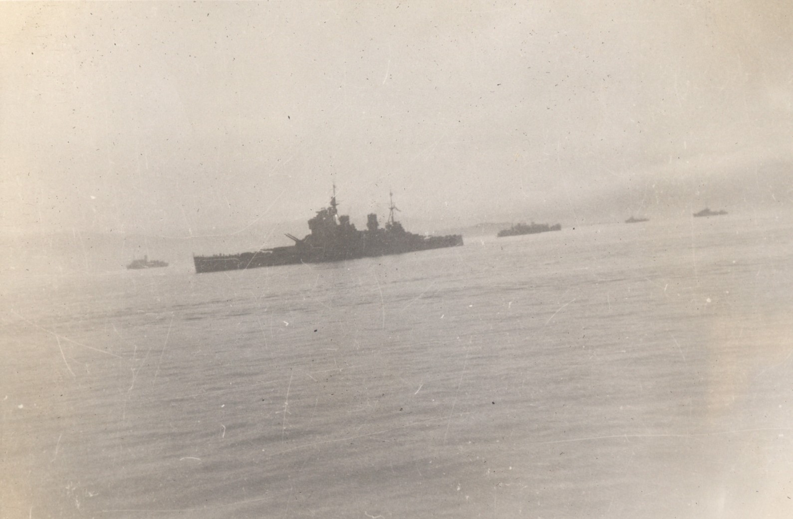(RAS232-RS236) HMS DUKE OF YORK - King George V Class Battleship - seen in the Mediterranean from HMCS MORDEN K170 while escort for Operator Torch KMS-11G and MKS-10 Convoys Mar 1943