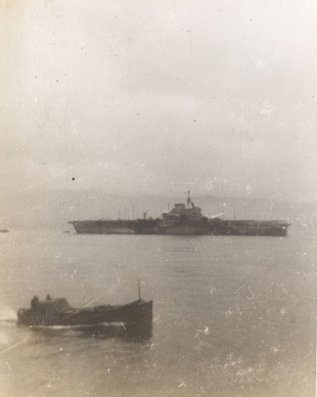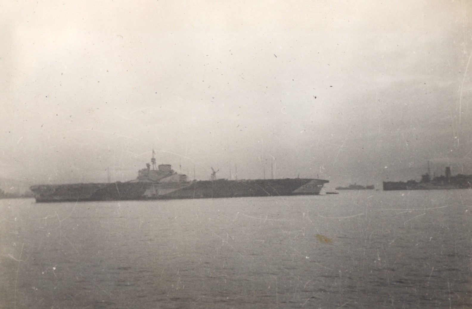 (RAS237-RAS238) HMS FORMIDABLE - Illustrious Class Aircraft Carrier - seen in the Mediterranean from HMCS MORDEN K170 while escort for Operator Torch KMS-11G and MKS-10 Convoys Mar 1943