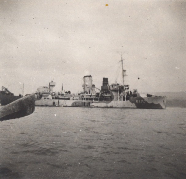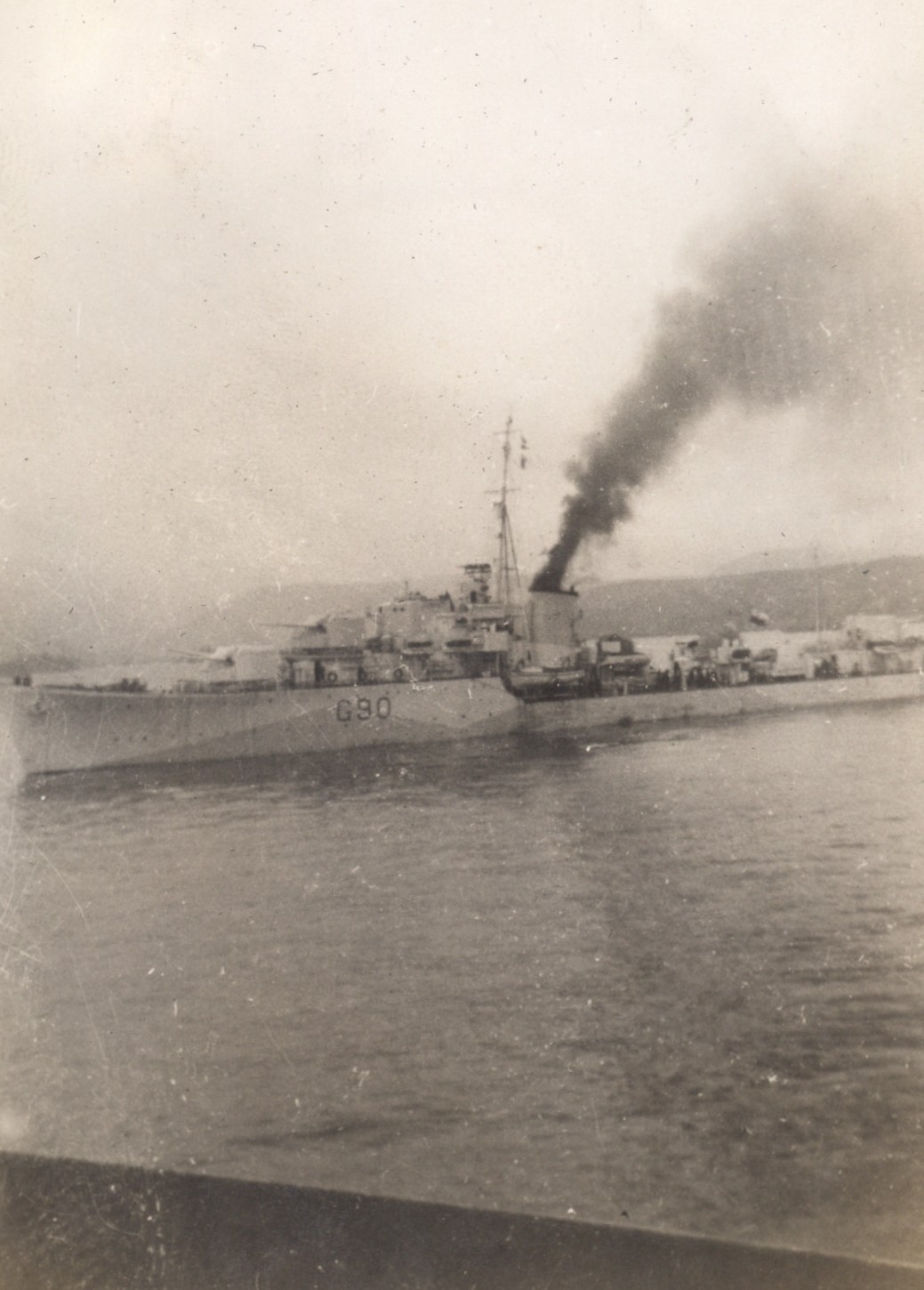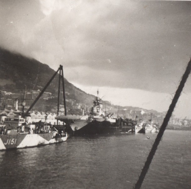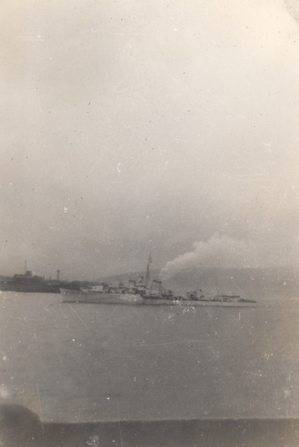 Various ships seen from HMCS MORDEN K170 while operation in the Mediterranean (RAS240) Unknown Escort Carrier (RAS241) HMS MALAYA - Queen Elizabeth Class Battleship (RAS242) Unknown Escort Carrier (RAS243) Unknown Escort Carrier (RAS244) The coast of Algiers