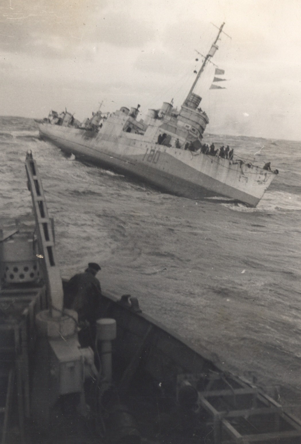 (RAS257-RAS258) ORP ORKAN G90, formerly HMS MYMIDON, was an M-class destroyer of the Polish Navy during World War II. Orkan is Polish for "hurricane". Historical note: At 07.05 hours on 8 October 1943, Orkan, under Lt. Stanislaw Hryniewiecki, serving as one of the escorts of the convoy SC 143, was hit by a GNAT homing torpedo from U-378 while escorting the convoy SC 143 and sank within a few minutes. One officer and 43 ratings were rescued by HMS Musketeer. The sinking of Orkan was the biggest life loss of Polish Navy resulting from a single incident in its entire history