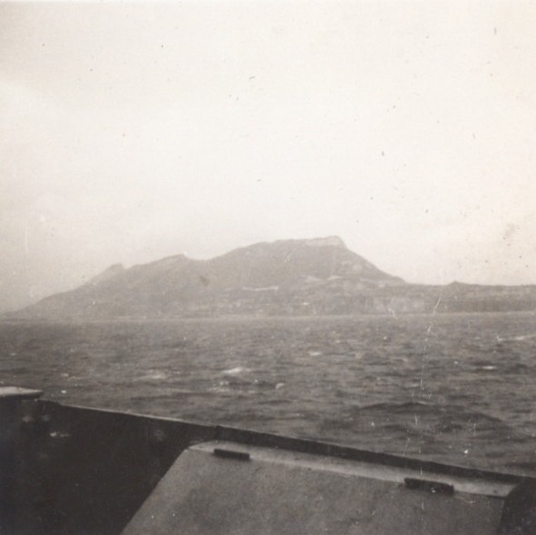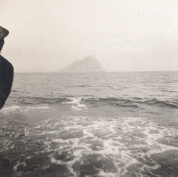 (RAS225-RAS227) The Rock of Gibraltar seen from HMCS MORDEN K170 (RAS228) Entering Gibraltar (RAS229) HMS CLACTON J151 with unknown carrier astern at Gibraltar