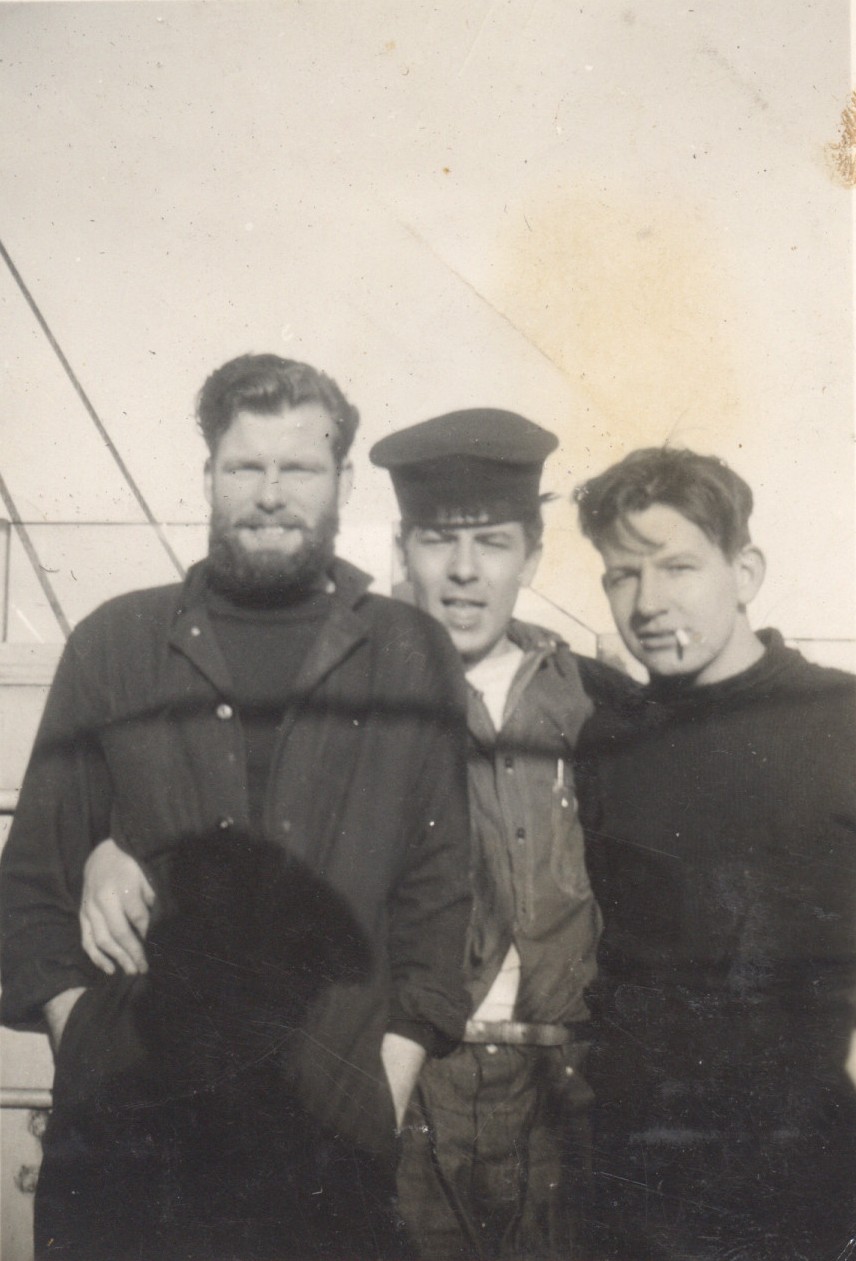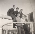 (RAS184) Ross (Sandy) Somerville posing on a fencepost - location unknown (RAS185 / GEC024) Ross (Sandy) Somerville on the bridge of HMCS MORDEN K170 - from the collection of George Crew, Leading Telegraphist, RCN (RAS186) Ross (Sandy) Somerville on the bridge of HMCS MORDEN K170 (RAS187) Ross (Sandy) Somerville, Fergie and Bill McGrath on the bridge of HMCS MORDEN K170 (RAS188) Ross (Sandy) Somerville, Bill McGrath and an unknown shipmate on the bridge of HMCS MORDEN K170