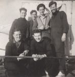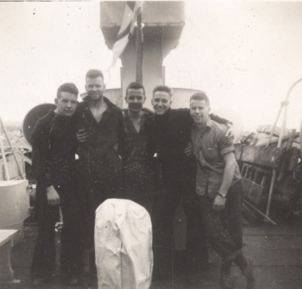 (LR08) Larry Restall on HMCS MORDEN. Note the gunshield art painting to the right of the photo (LR09) A few of the crew of HMCS MORDEN