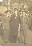On Leave In London - Oct 1943 (RAS287-RAS288) A reunion in London, England. Alan Pearce, Ross Somerville, Harry Brodie at Trafalgar Square. Alan grew up a few doors down from Ross on Balmoral in Hamilton and was one of his best public school chums, and Harry lived a couple of streets away. It is not known which ship Ross was serving in when this photo was taken. (RAS289) Ross Somerville (centre) with 2 unknown British servicemen