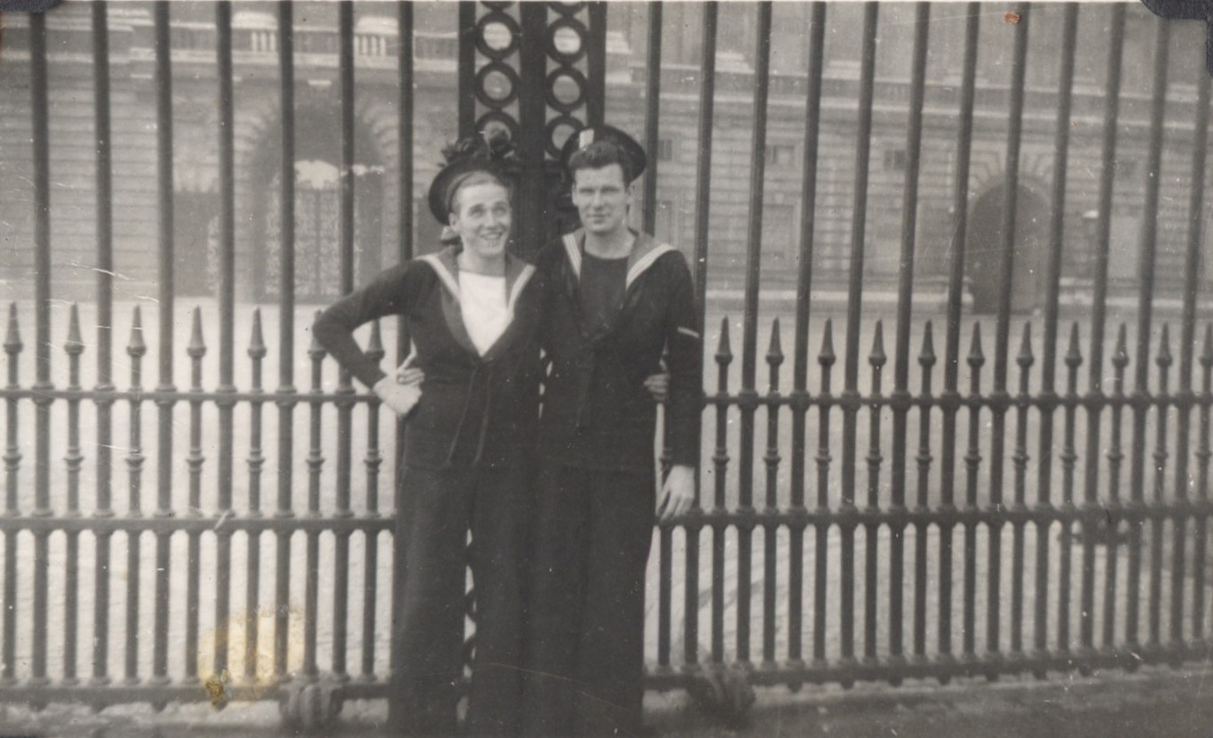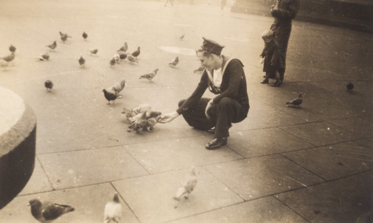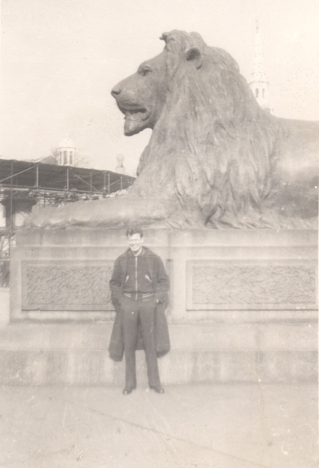 On Leave In London - Oct 1943 (RAS290) Ross (Sandy) Somerville at Trafalgar Square (RAS291) Two of Ross (Sandy) Somerville's shipmate at Trafalgar Square (RAS292) Ross (Sandy) Somerville with unknown friend/shipmate in front of the gate to Buckingham Palace (RAS293) Ross' friend / shipmate feeding pigeons (RAS294) Memorial to Queen Victoria