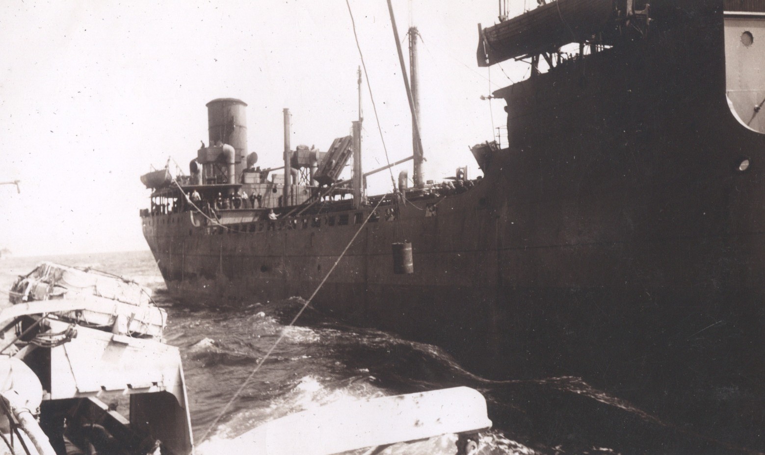 The sinking of the SS CITY OF CHRISTCHURCH - 22 Mar 1943 (RAS215-RAS216) Lifeboat from the SS CITY OF CHRISTCHURCH approaches HMCS MORDEN K170