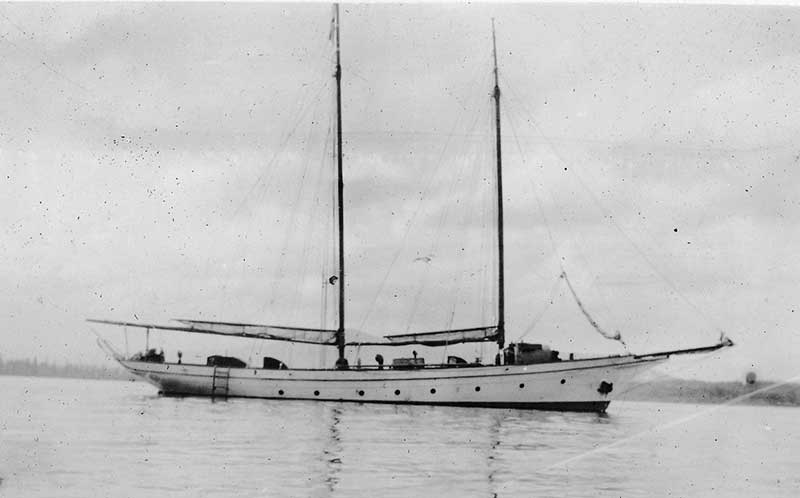 Based at Esquimalt. Hydrographic Survey. Dominion Government Ship NADEN, in 1913, was built by Wallace Shipyards Ltd., the predecessor of Burrard Dry Dock as their hull #85 & was actually constructed in North Vancouver. The Naval Service bought the vessel while under construction & did not actually order it. First used as a tender to the Dominion Govt Survey Ship Lillooet, & fitted with a deck cabin or house. Capt L.R.W. Beavis states in his book that he was given command of NADEN in 1915. He was ordered to take NADEN up the Fraser River & moor her inside Popular Island. Rear Admiral William Oswald Story RN Ret'd Senior Naval Officer West Coast was onboard for the passage. He was further ordered to hide her in one of the numerous inlets if the Germans broke the blockade & came, to destroy her at once if the Germans discovered her. Later NADEN was laid up in Wheelbarrow Creek Mill Bay Vancouver Island. About 1918, NADEN being laid up at New Westminster, she was loaned to the Naval College. The deck cabin was removed & she was commissioned as a tender to the Naval College at Esquimalt for training in sail. NADEN was the tender to the College up to 01 Jun 1920 when she took over as depot ship for the shore barracks. She eventually succeeded the Rainbow as Depot Ship upon whose books the names of Officers & Ratings were borne while serving ashore. HMCS NADEN (D/S) was paid off 31 Jul 1922 & subsequently sold in Jul 1925, to Lt Joseph William Hobbs RCNVR for $1,091.00, & renamed Mabel Dell. Hobbs employed her as a training ship for naval reserve seamen of the Vancouver Half Company of which Hobbs was the CO, from 1924-28. Later Mabel Dell was sold, & became a yacht of a Hollywood movie star.