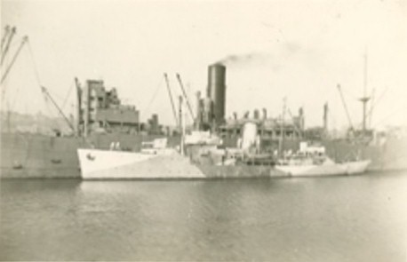 (JCVB007) Convoy seen from HMCS NANAIMO K101 (JCVB008) Unknown merchantman in convoy - 1941 (JCVB009) SS Port Nicholson sinking after being torpedoed by U-87 16 Jun 1942 while part of convoy XB.25, Halifax to Boston (JCVB010) SBA John Brodie on HMCS NANAIMO K101 wearing a Mae West life belt - 1942