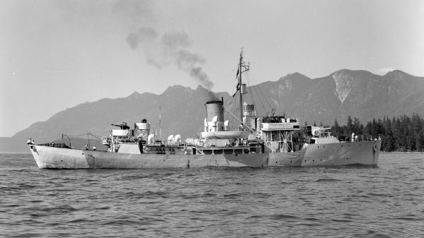 With the formation of escort groups in Jun 1943, NANAIMO became a member of EG W-9, transferring to W-7 in Apr 1944. In Nov 1944, she was allocated to Pacific Coast Command, arriving at Esquimalt on 07 Dec 1944. There she underwent a refit that lasted until 21 Feb 1945 but left her one of the few corvettes to survive the war with a short fo'c's'le. She was paid off for disposal at Esquimalt on 28 Sep 1945, and subsequently sold for mercantile use. Converted to a whale-catcher at Kiel in 1953, she entered service as the Dutch-flag Rene W. Vinke, finally being broken up in South Africa in 1966.