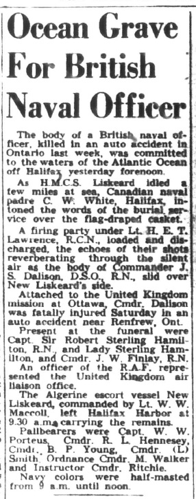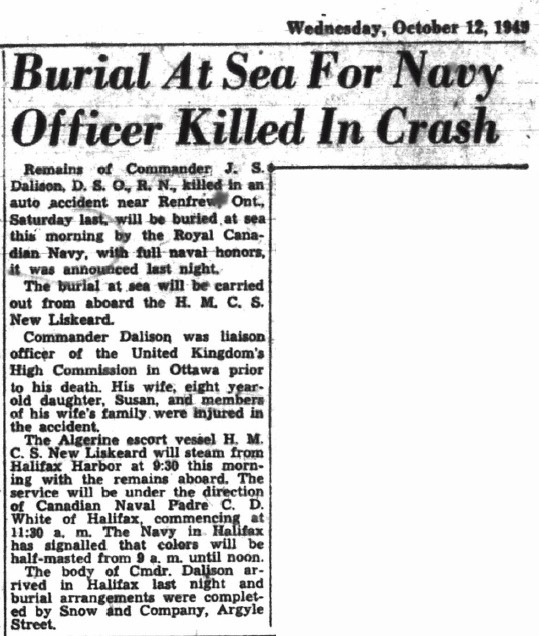 Dalison, DSO, RN from HMCS NEW LISKEARD