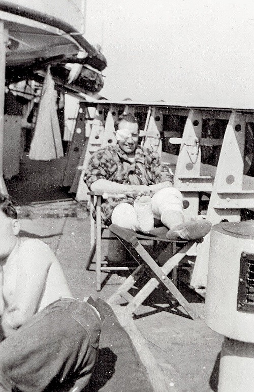 Charles Callow relaxing getting some sun on HMCS New