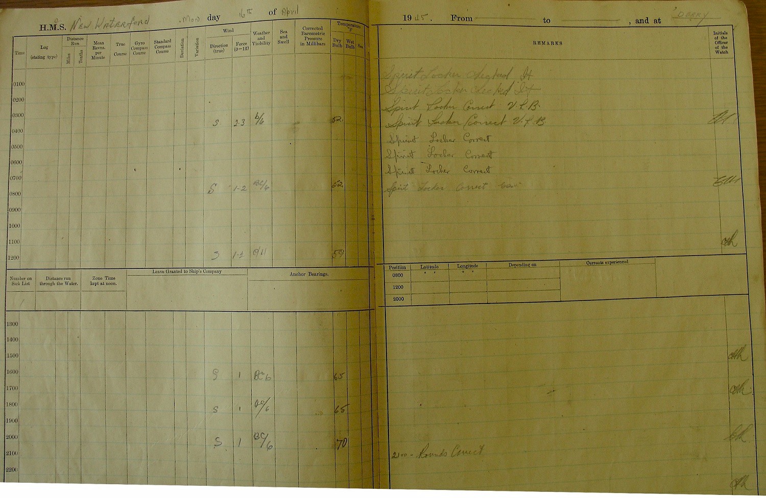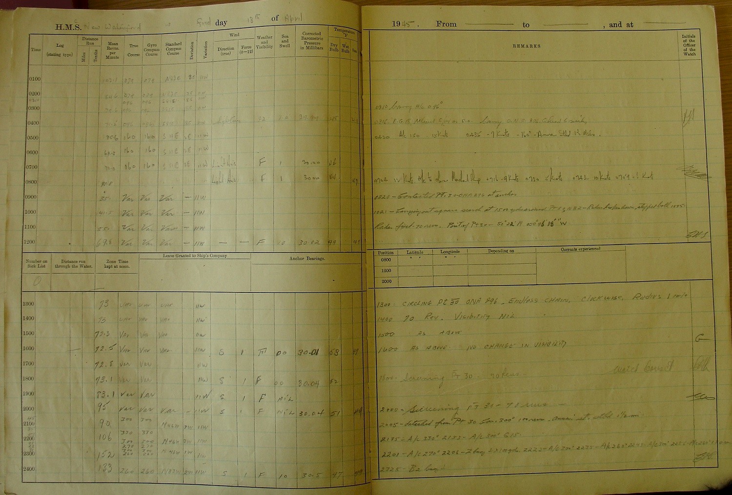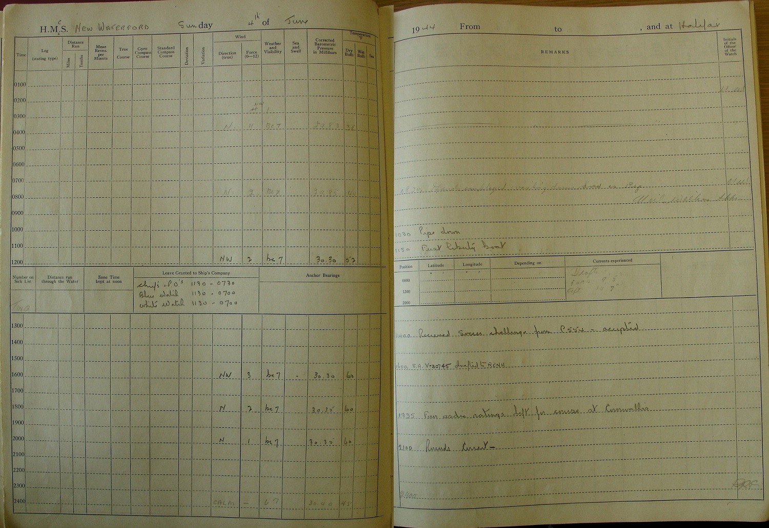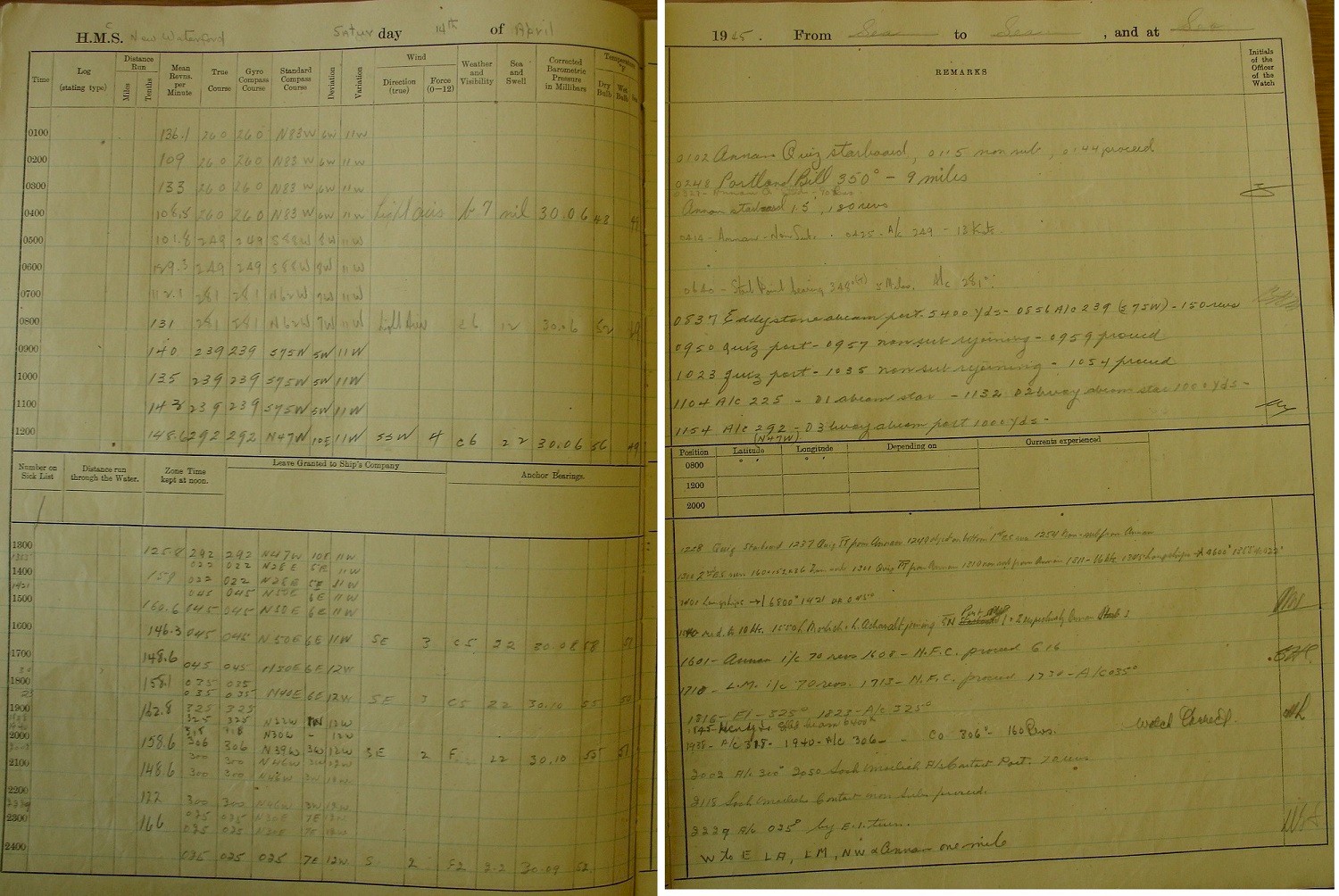 the notes of Tel Austin Innes, RCNVR: "May 13 at 4:30 - We left Ireland