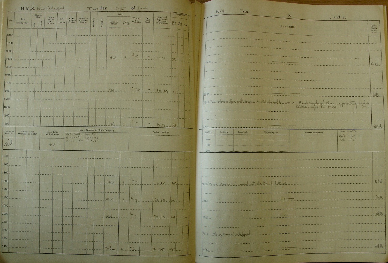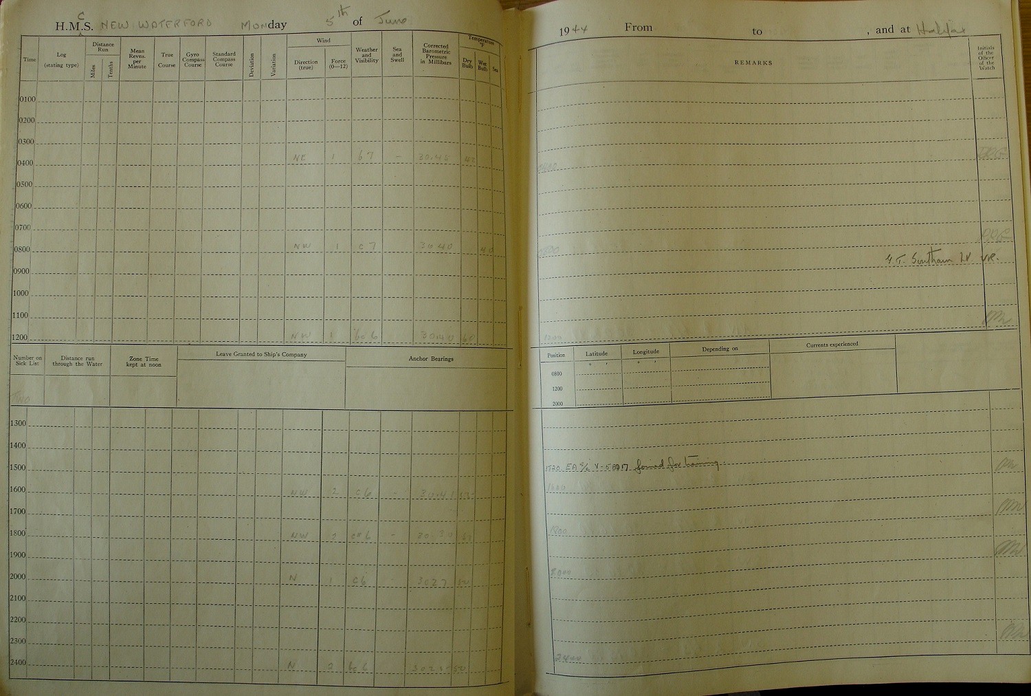 War Diary of Charles Callow, HMCS New