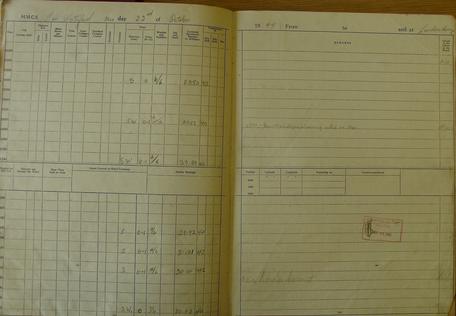 This was completed in Nov 1945, and New Waterford left in Jan