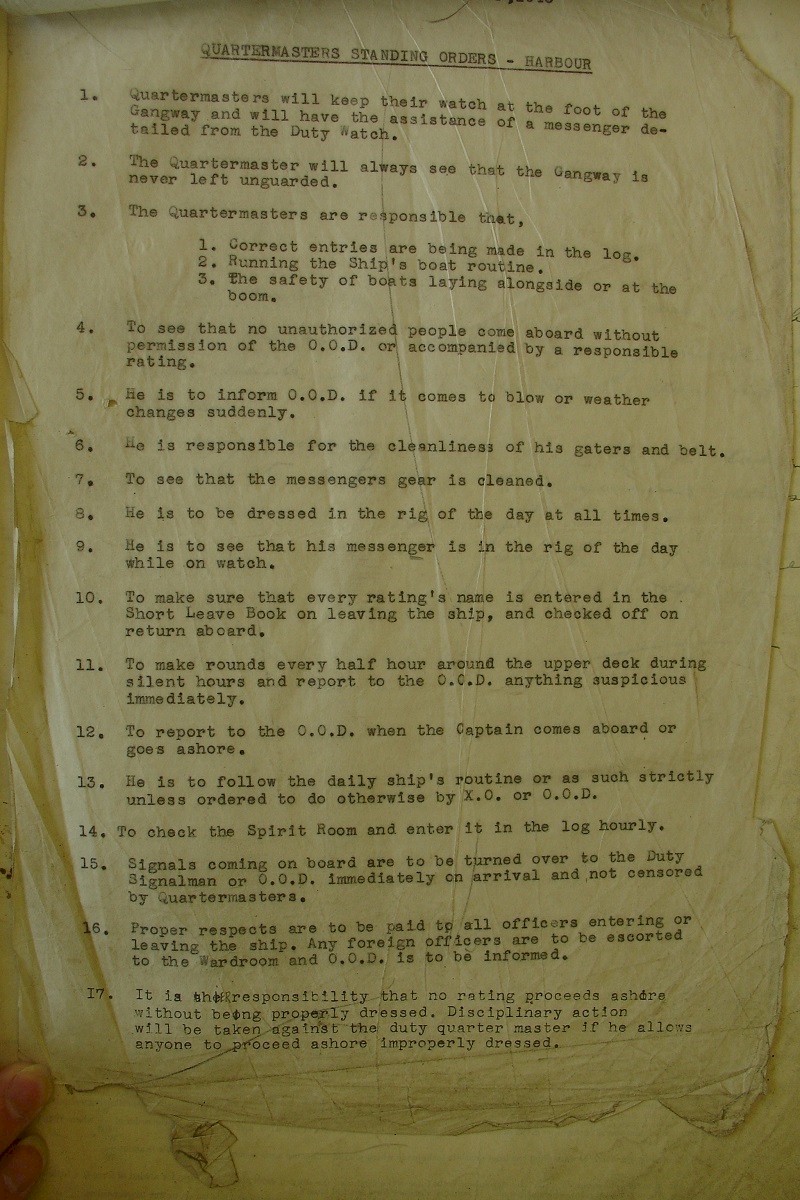 keep a diary on ship in the event the ship was sunk or captured and