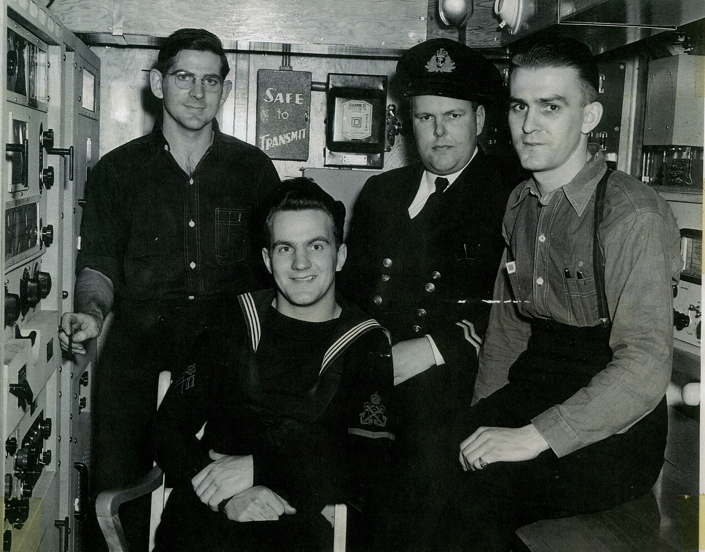 (WL05) Radio room on HMCS New Waterford. L-R: PO Tel