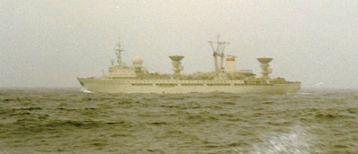 Soviet ship Akademik Sergey Korolyov photographed from HMCS NIPIGON 266 during an East Coast Patrol 17 Apr 1971