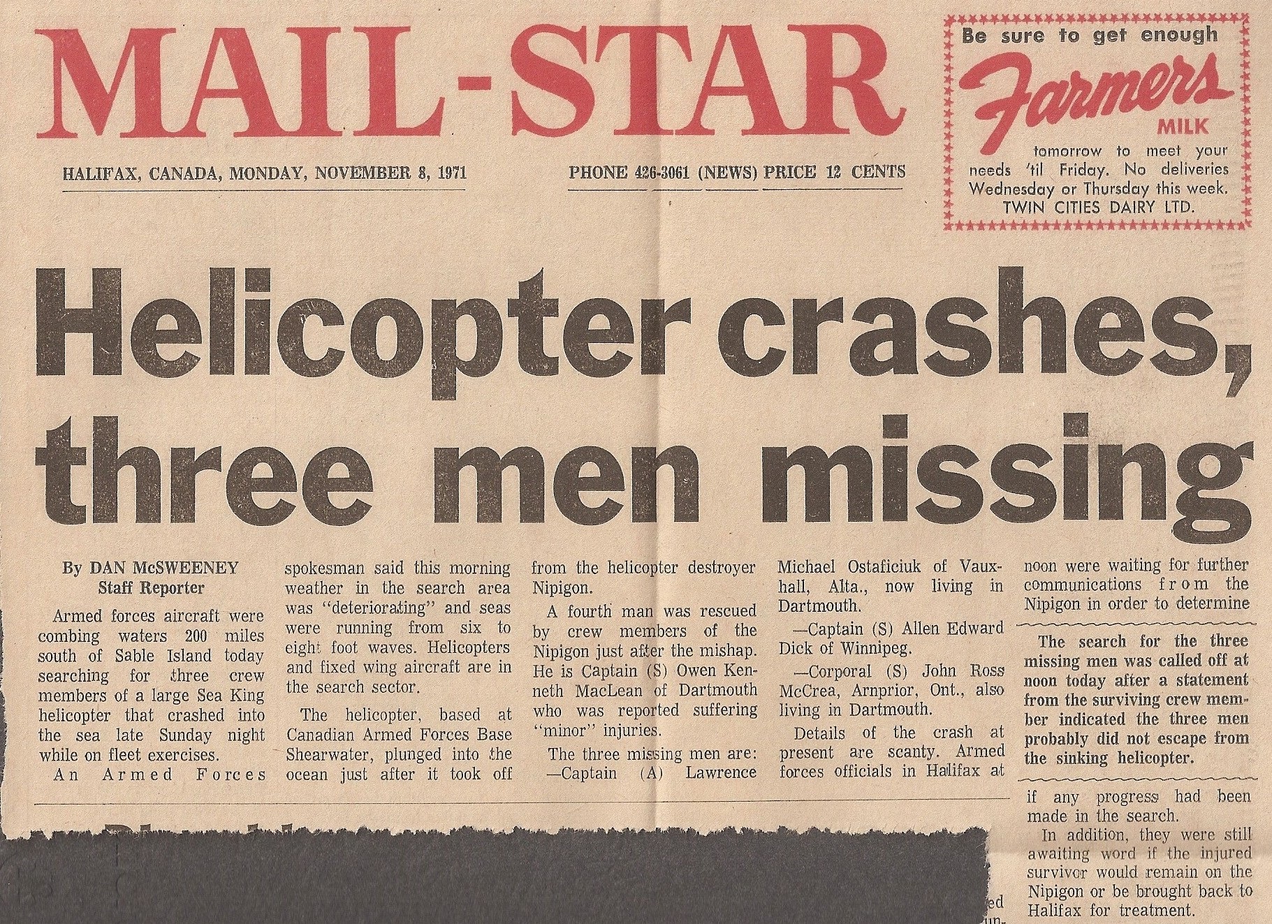 Nov 7th is a lot tougher than Nov 11 - The Crash of HMCS NIPIGON'S Sea King