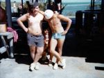 (MF01) OS Mike Fournier on the right with a few mates painting ship on HMCS NIPIGON 266 in Puerto Rico - 1974