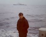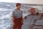 (MF06) AB Mike Fournier on HMCS NIPIGON 266 during an exercise at sea - 1975.  Unknown Canadian ship in the background