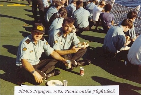 (NPG011 - NPG013) Picnic on the flight deck of HMCS NIPIGON in 1982.  The 3rd photo shows the after-picnic clean-up  //  Courtesy of John Knudsen