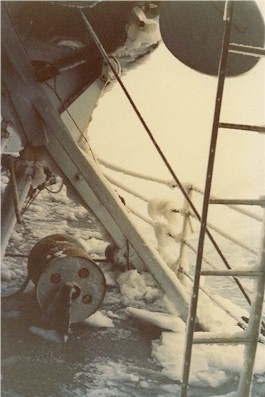 (NPG017) HMCS NIPIGON covered in ice