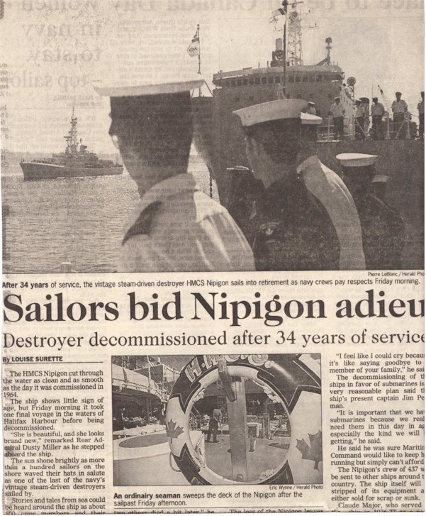 (NPG100) Newspaper article on HMCS NIPIGON'S final sail past  //  Courtesy of John Leforte