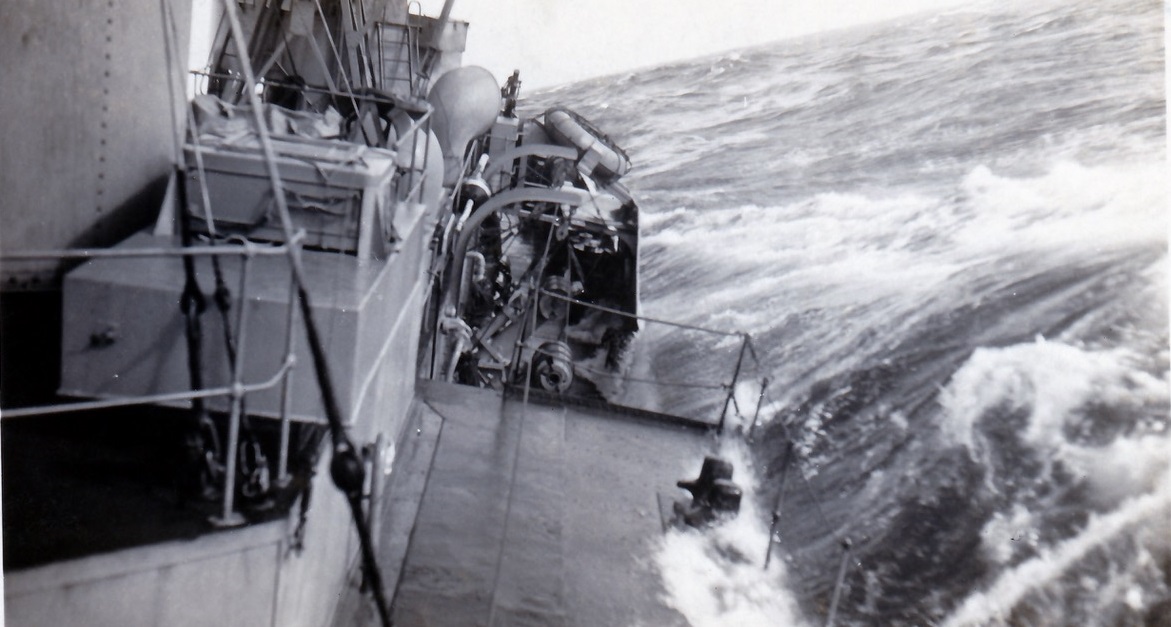 (DJ08-DJ12) HMCS NORTH BAY K339 in heavy seas in the North Atlantic