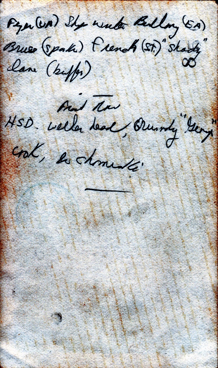 (DJ48) "George" on HMCS NORTH BAY // back of photo (DJ49) A/Wt (E) Ralph Whittaker on HMCS NORTH BAY (DJ50) "Bingo" Forster on HMCS NORTH BAY // back of photo