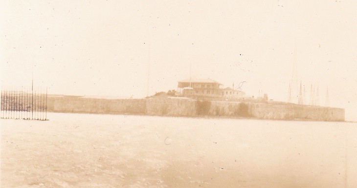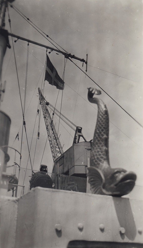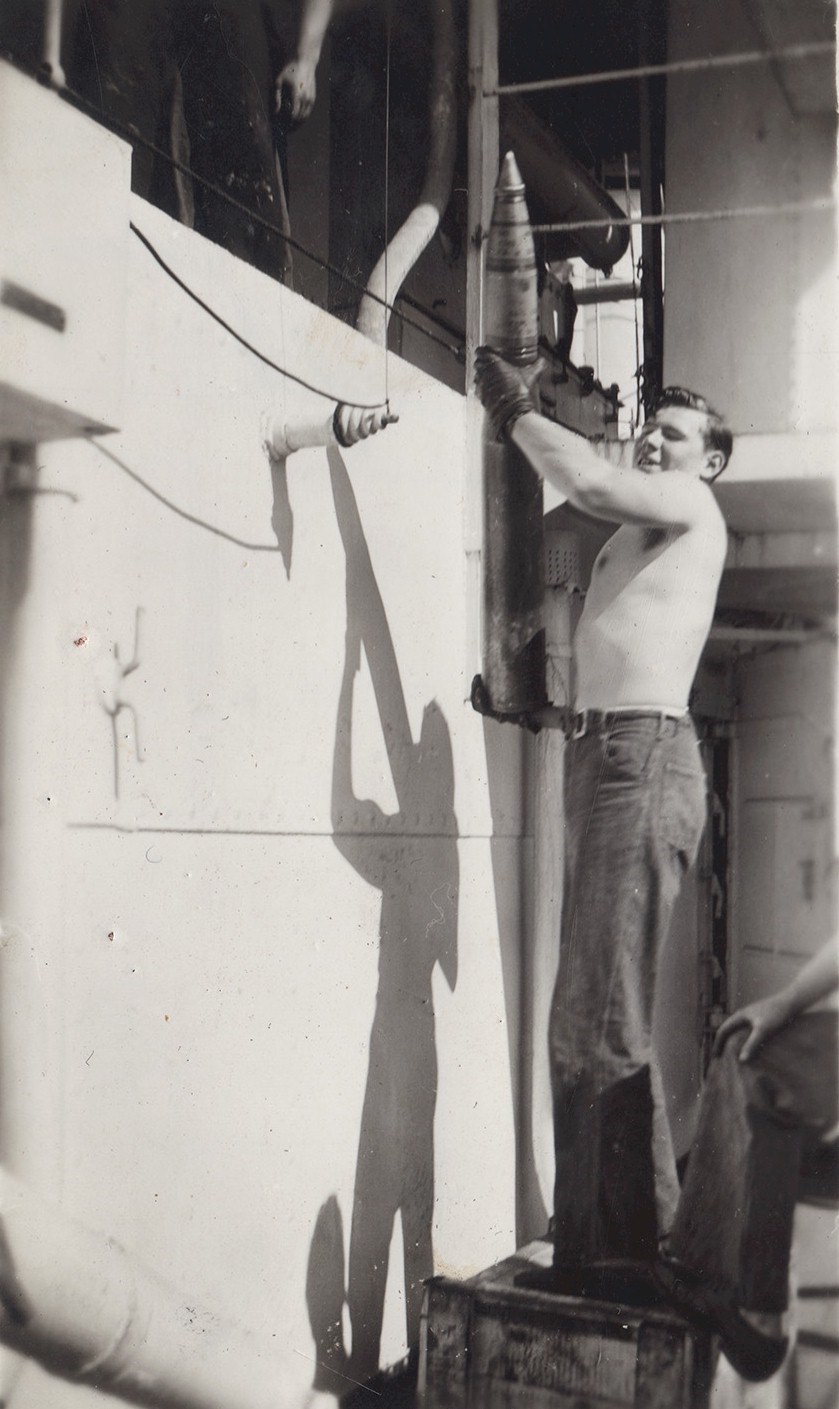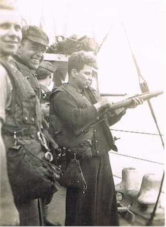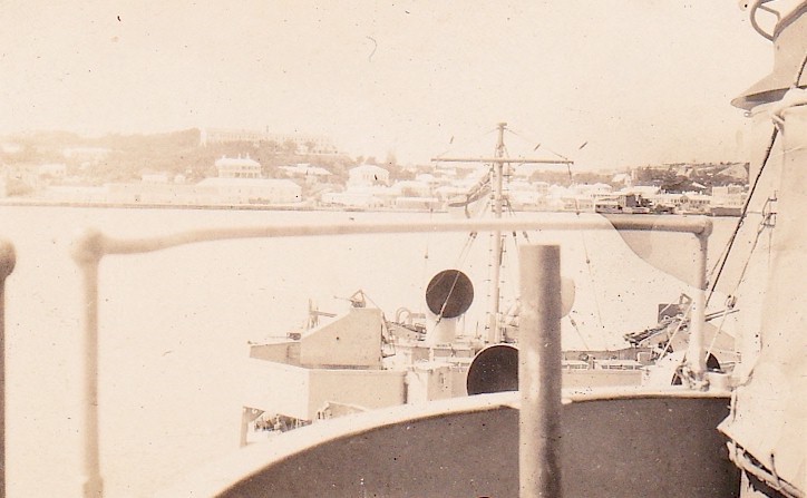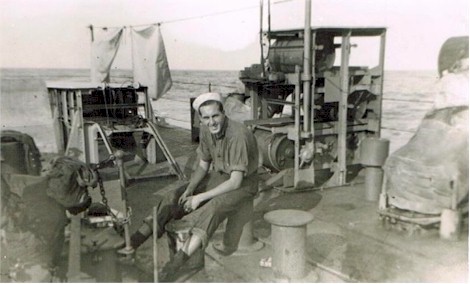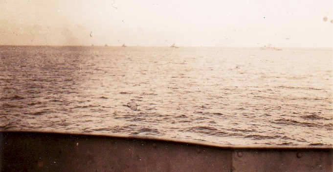 Behind the 12-pdr shelter on HMCS Orkney on our way to