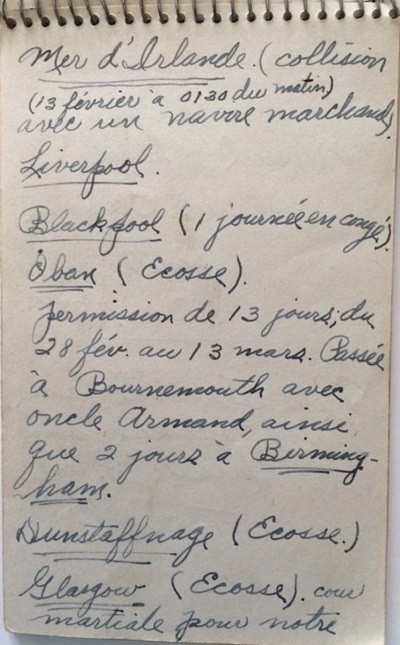 on duty in U.K. waters until 13 Feb 1945 when she collided