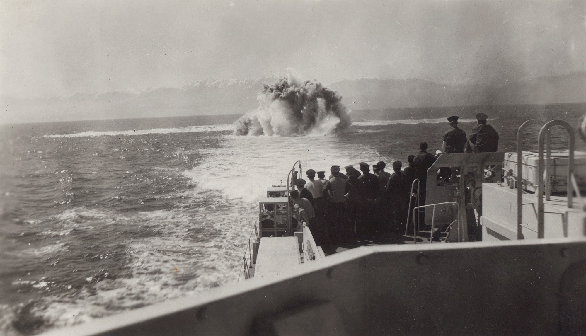 HMCS Strathadam, 11 Apr 1945, when a hedgehog exploded during the attack on