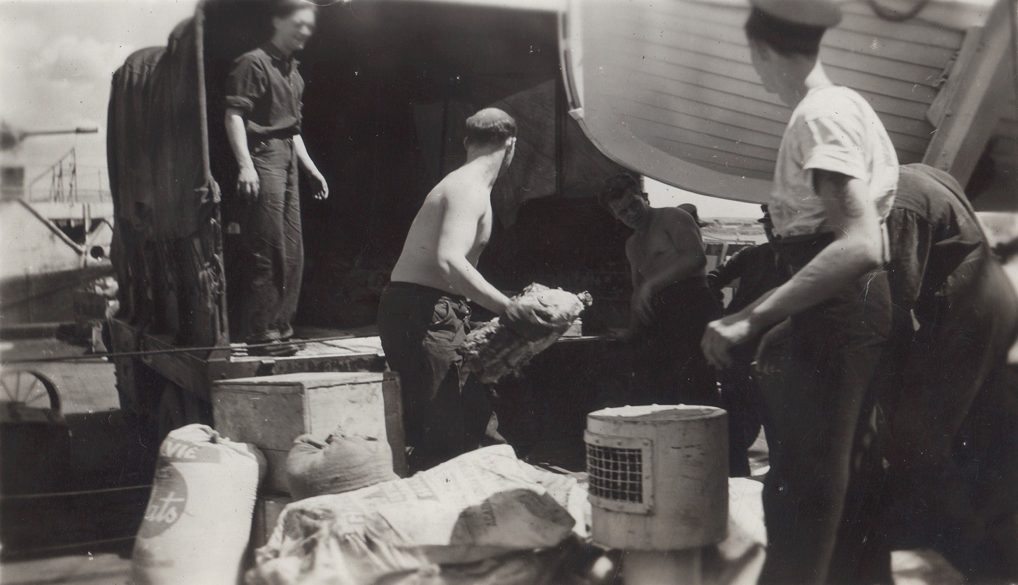 De-ammunitioning on the quarterdeck HMCS Orkney in