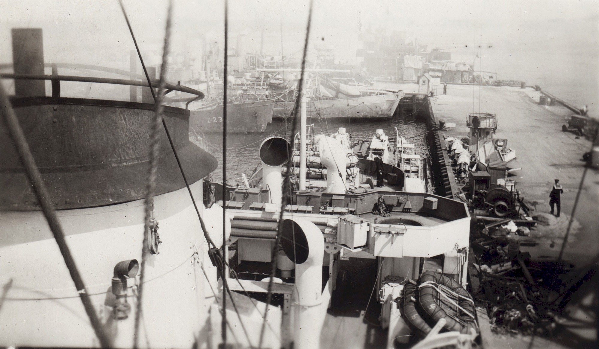 platform on the Port side. The bow of HMCS French Z23 is visible in the