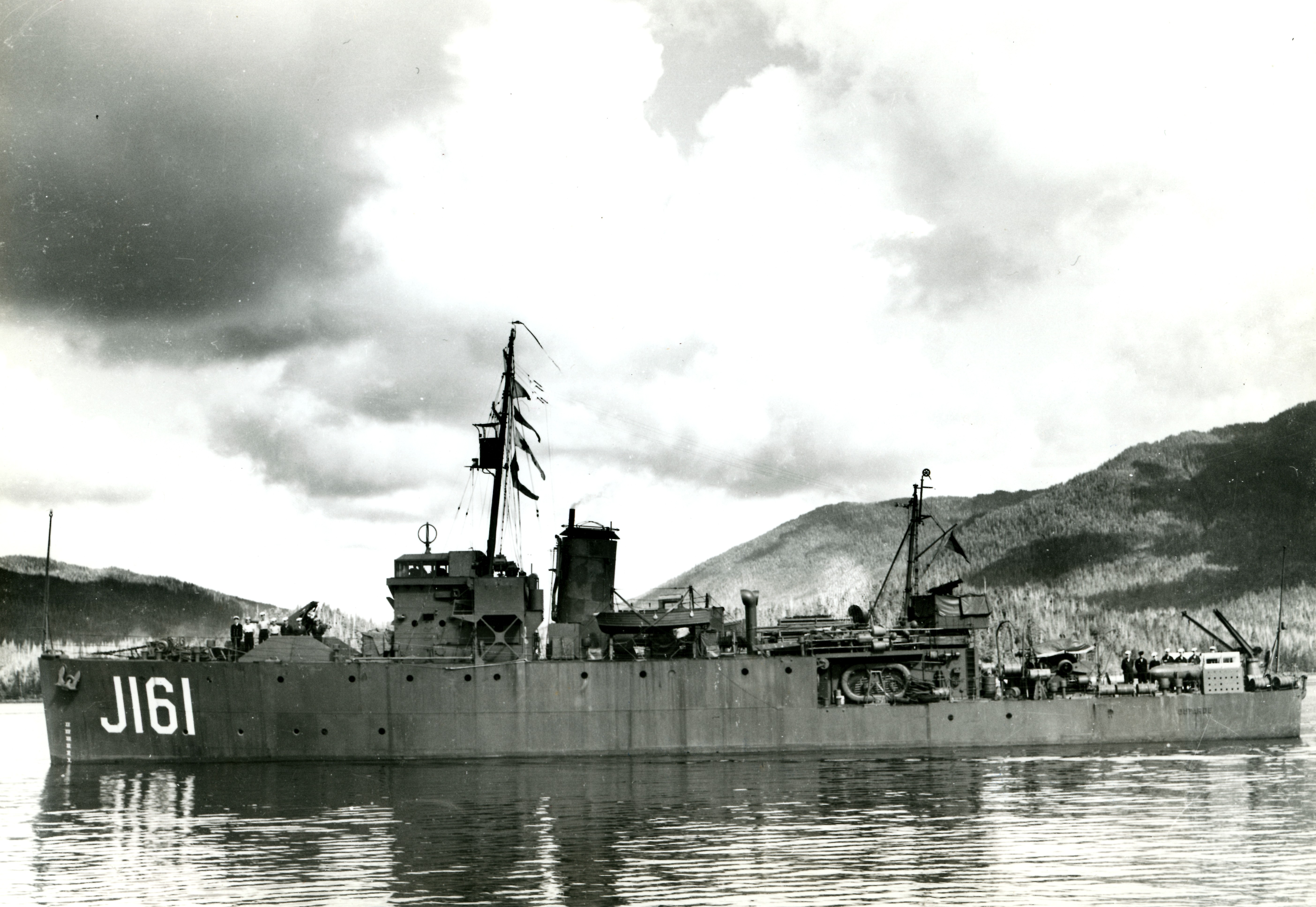 Named for OUTARDE Bay, Que., she was commissioned at Vancouver on 04 Dec 1941. OUTARDE spent her whole career on the west coast, alternately serving with the Prince Rupert and Esquimalt Forces. She was paid off 24 Nov 1945, at Esquimalt, sold in 1946 for conversion to a merchant ship, and re-named Ping Hsin by her Shanghai owners. She vanished from Lloyd's Register after 1950.