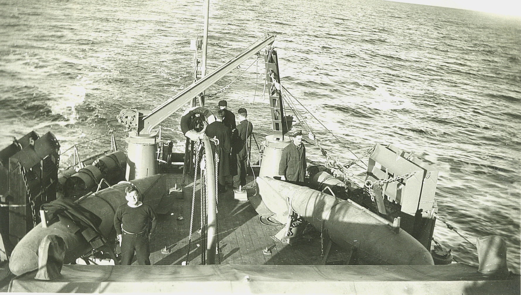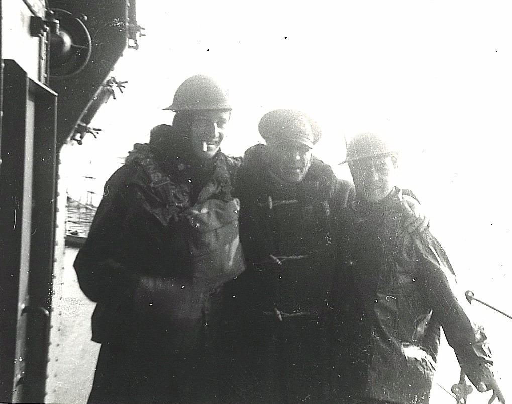 (HVS016) Quarterdeck of HMCS OUTARDE J161 - sailors in photo unknown (HVS017) Sailors on HMCS OUTARDE J161 // top: OS John C. Knowles, Leatham, Sinclair / bottom: Laing (HVS018) Stoker 2c Smith, Victualling Assistant Travis, Stoker 1c Wood, LTO Leadlay on HMCS OUTARDE J161 (HVS019) L-R: Hal Stevens, Lt Chambers and Crawford on HMCS OUTARDE J161 From the collection of Harold (Hal) Stevens, CPO1 Boatswain, RCN Courtesy of Rob Stevens