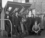 Gun crew on HMCS OUTARDE (DJ01) Dick James, standing, 2nd from right (DJ02) Dick James, standing, left hand on gun breech mechanism From the collection of Richard (Dick) James, CPO1 GI, RCN Courtesy of Rick James