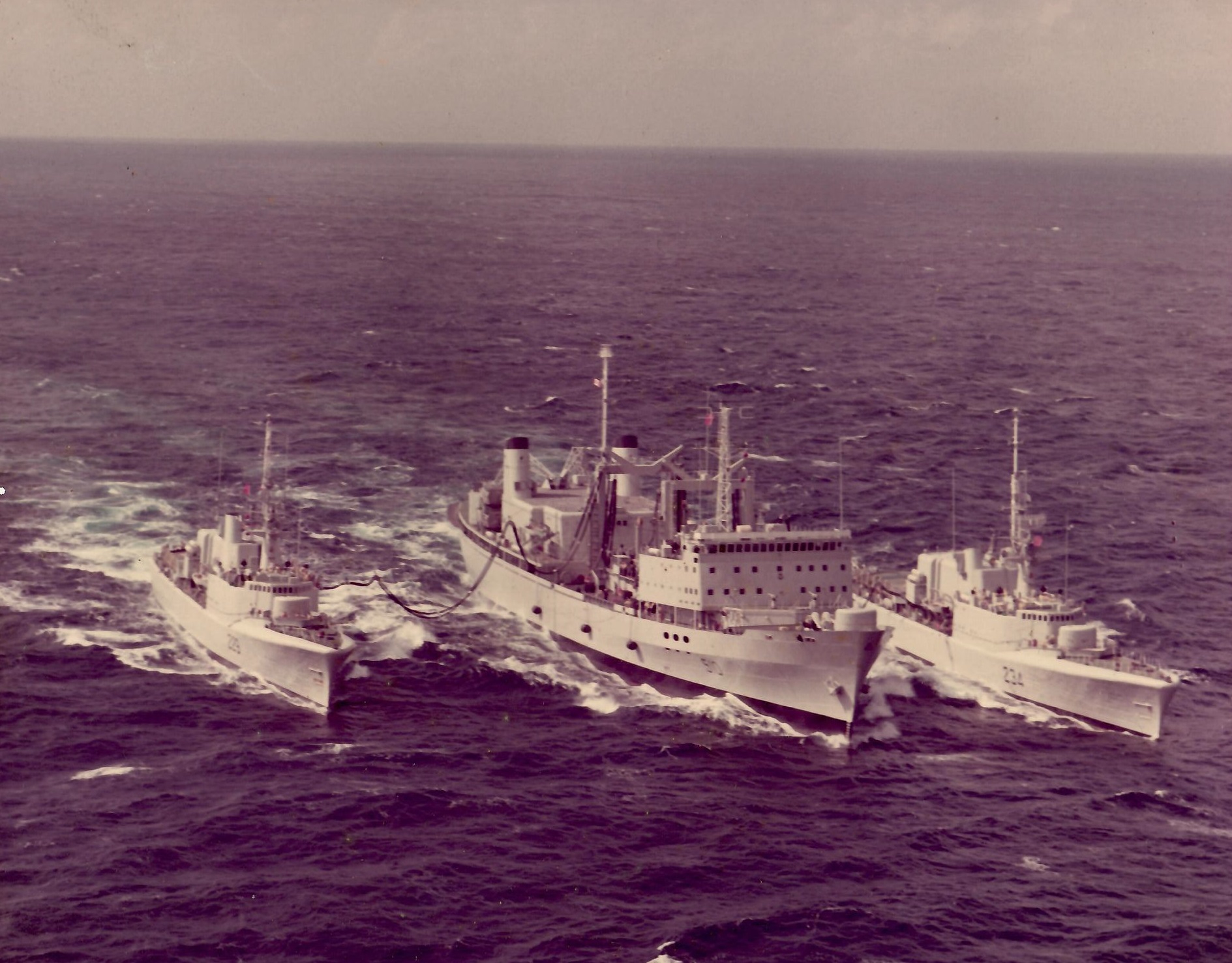 HMCS FRASER 233 approaching HMCS PRESERVER 510